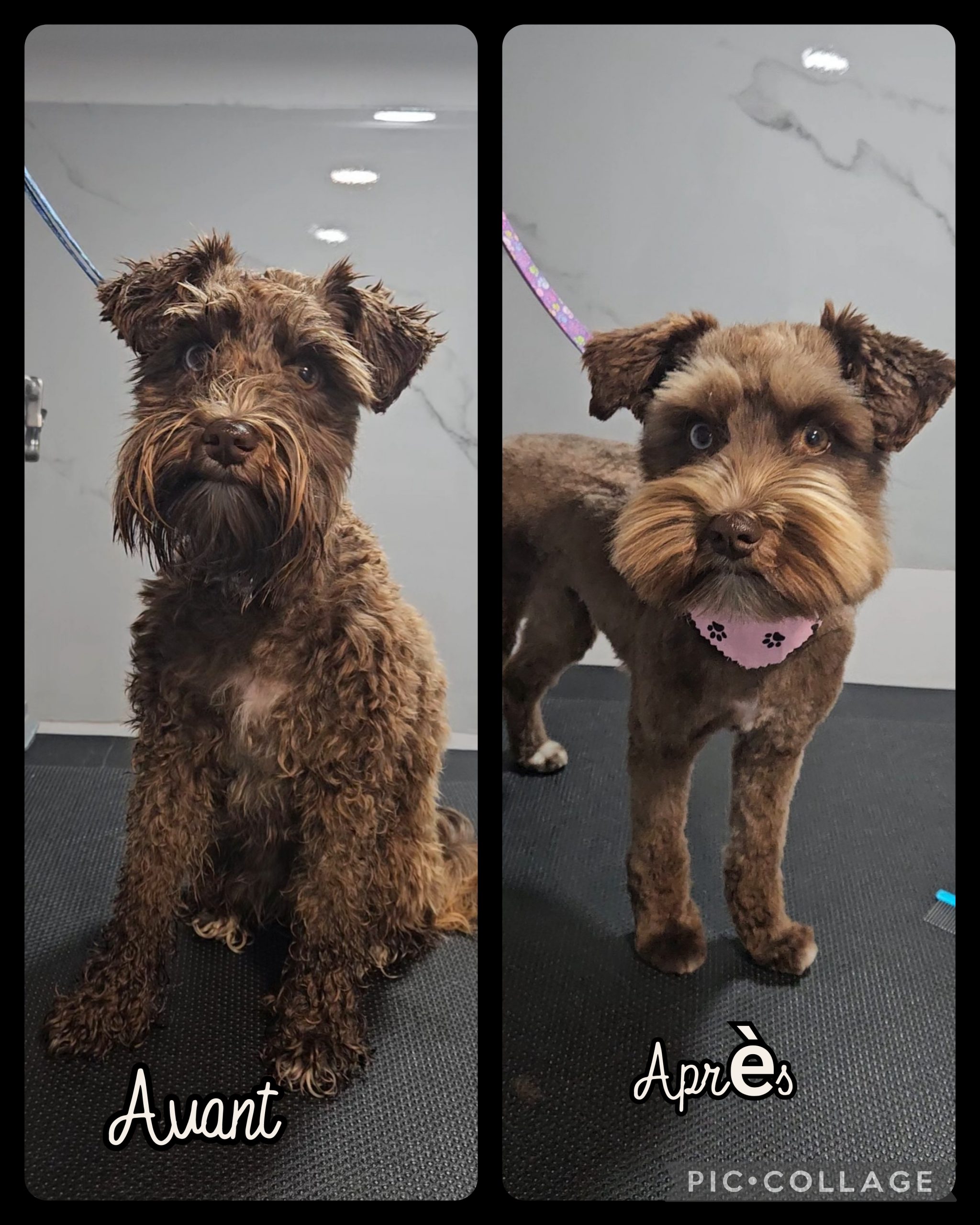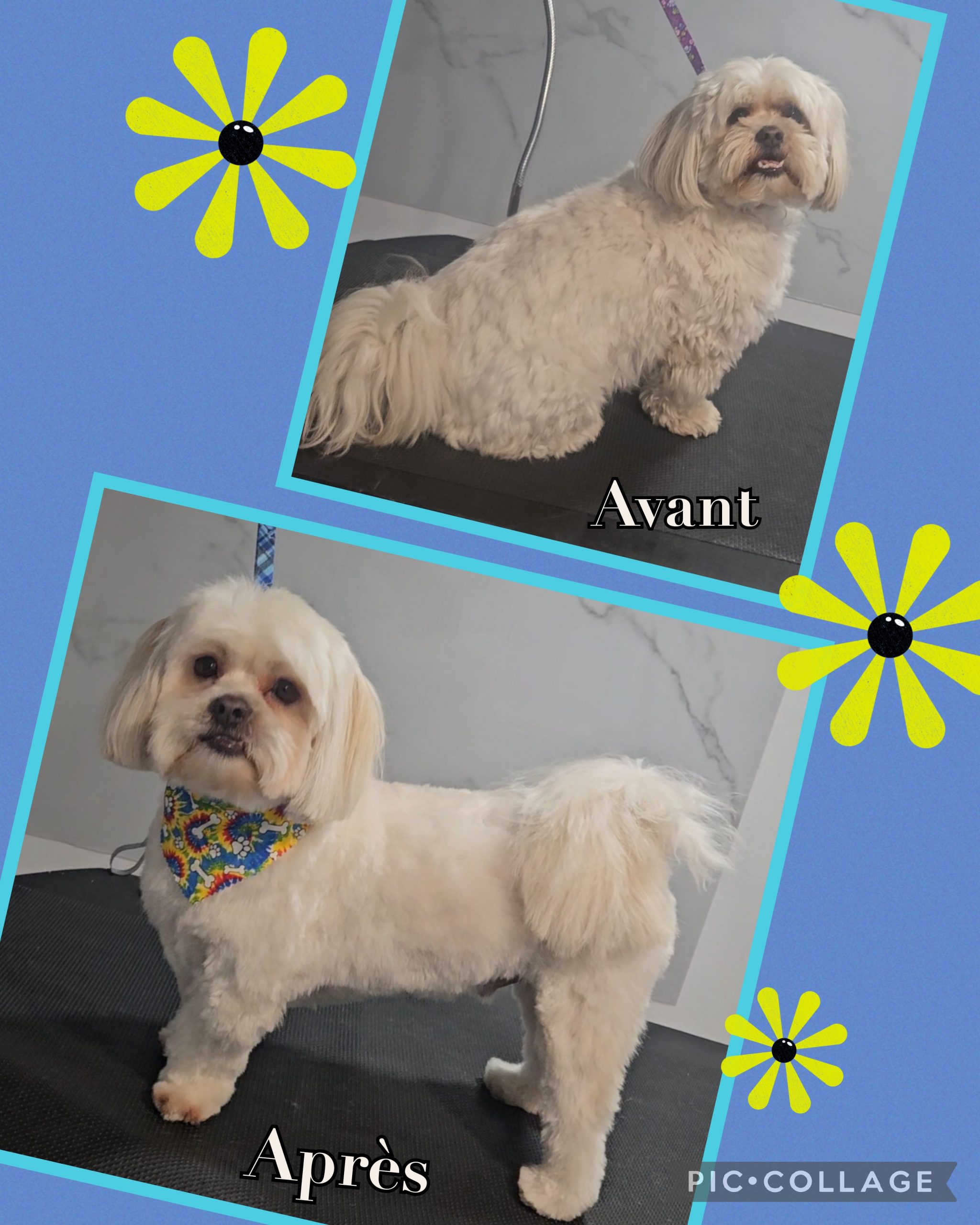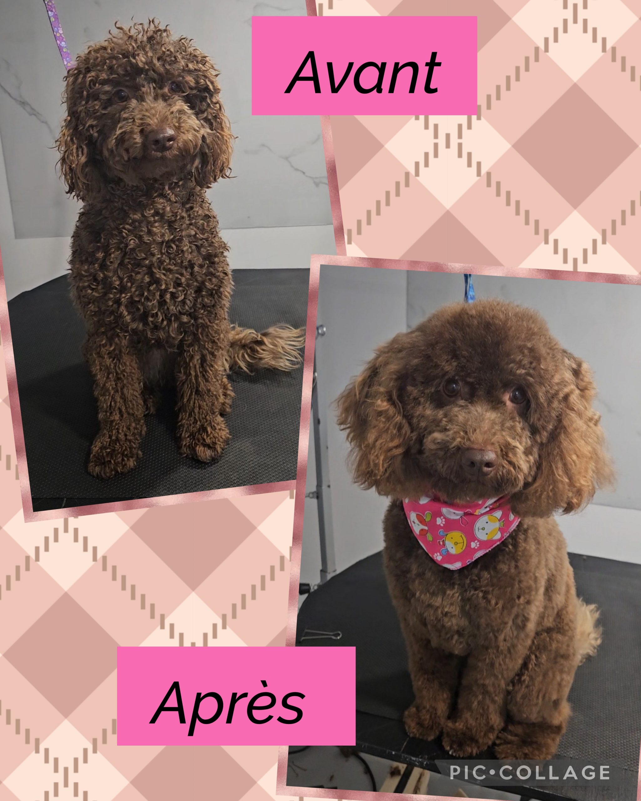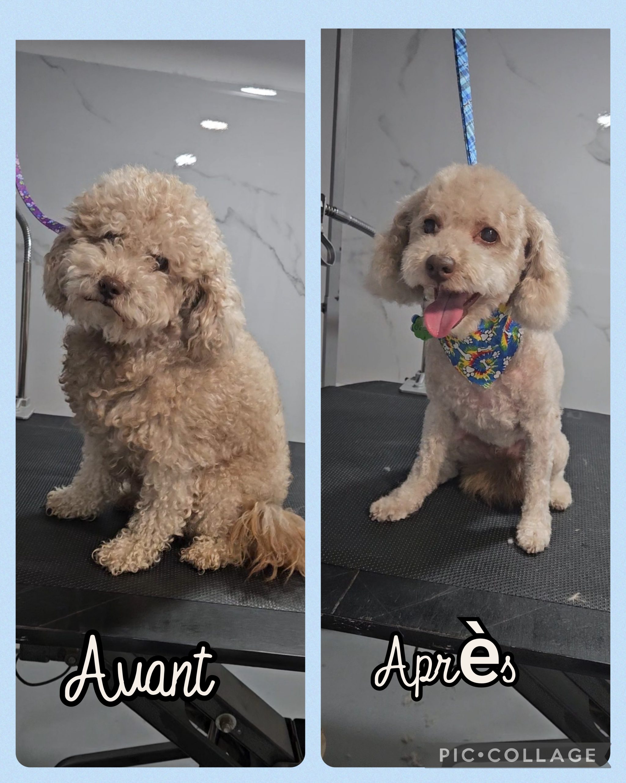Bienvenue dans ma galerie de toilettage ! À travers ces photos, je souhaite vous montrer le soin et l’attention que j’apporte à chaque chien qui me rend visite. Que ce soit pour une coupe classique ou un toilettage plus sophistiqué, je m’assure que chaque compagnon bénéficie d’une attention personnalisée et d’une expérience de bien-être optimale. Ces images montrent bien le dévouement que je mets dans chaque toilettage.