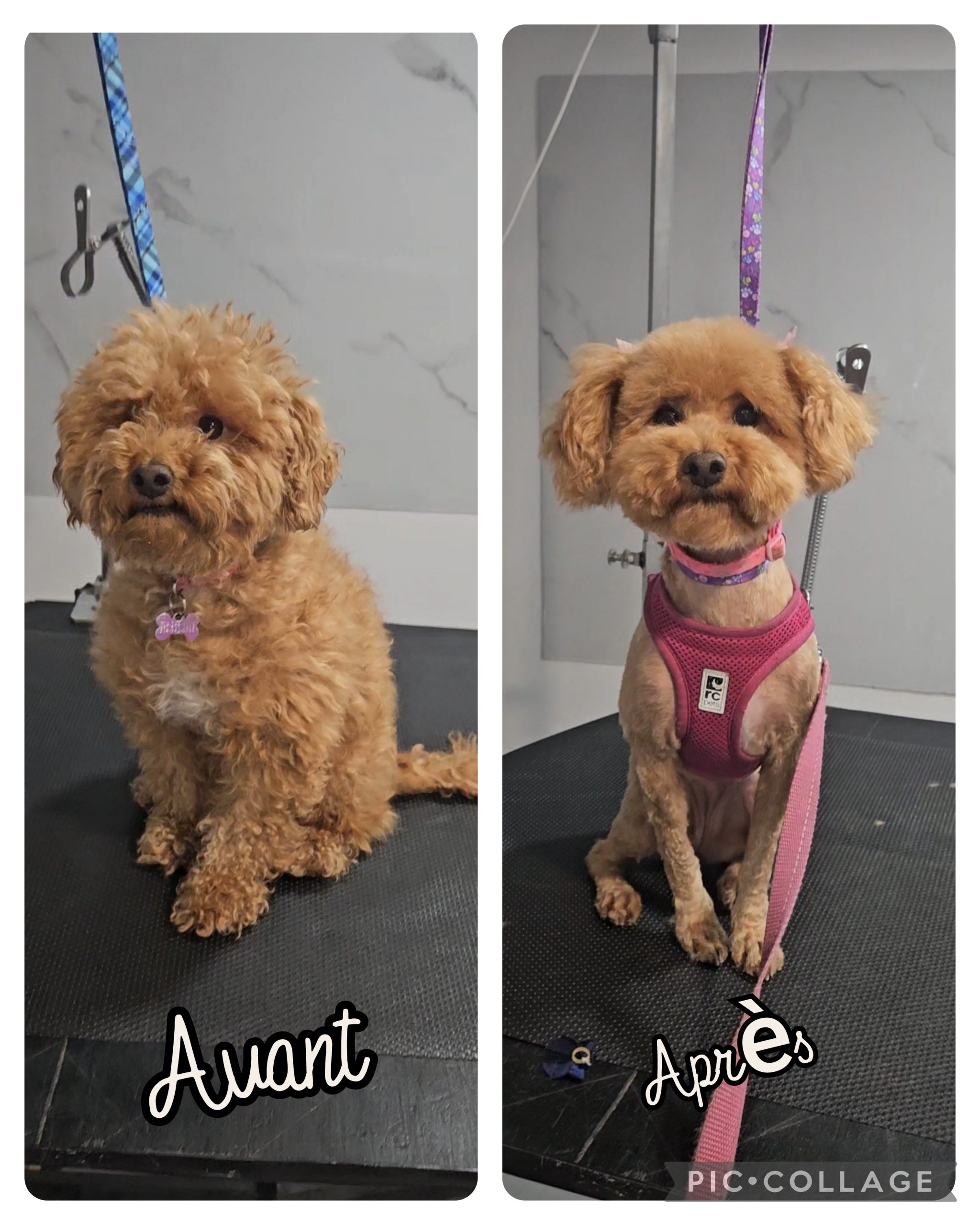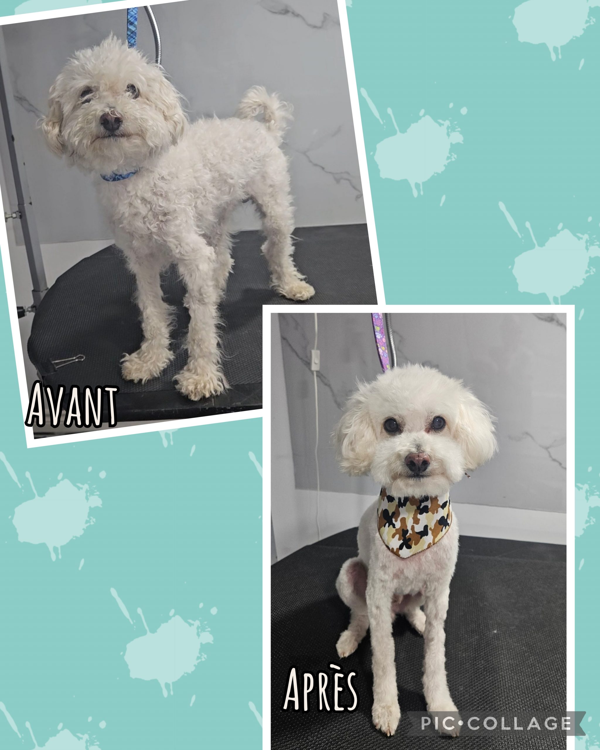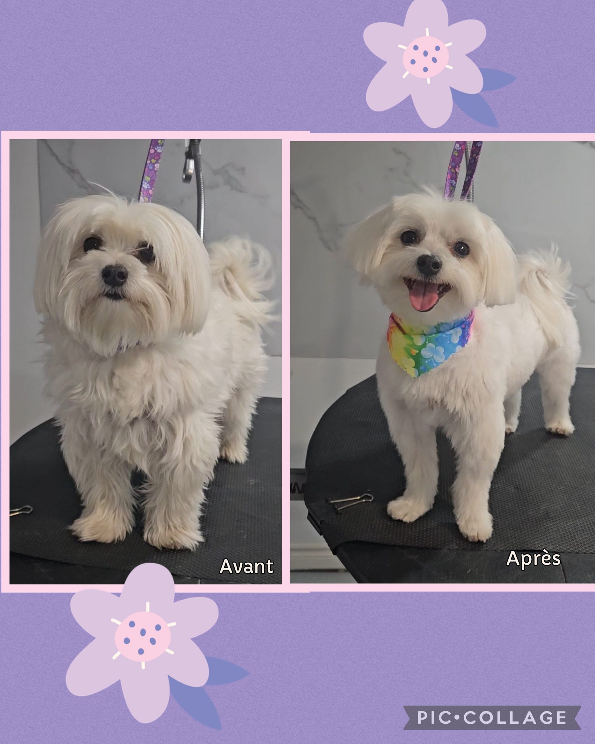 Bienvenue dans ma galerie de toilettage ! À travers ces photos, je souhaite vous montrer le soin et l’attention que j’apporte à chaque chien qui me rend visite. Que ce soit pour une coupe classique ou un toilettage plus sophistiqué, je m’assure que chaque compagnon bénéficie d’une attention personnalisée et d’une expérience de bien-être optimale. Ces images montrent bien le dévouement que je mets dans chaque toilettage.