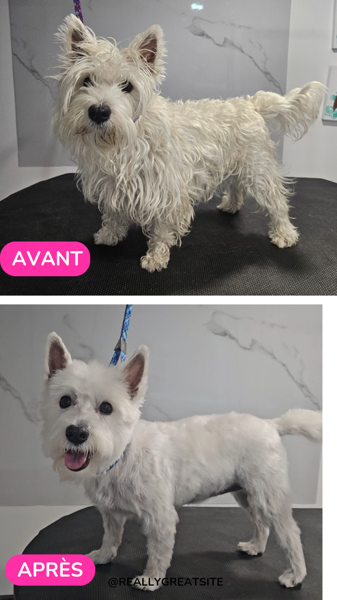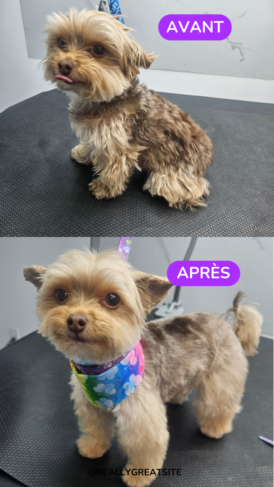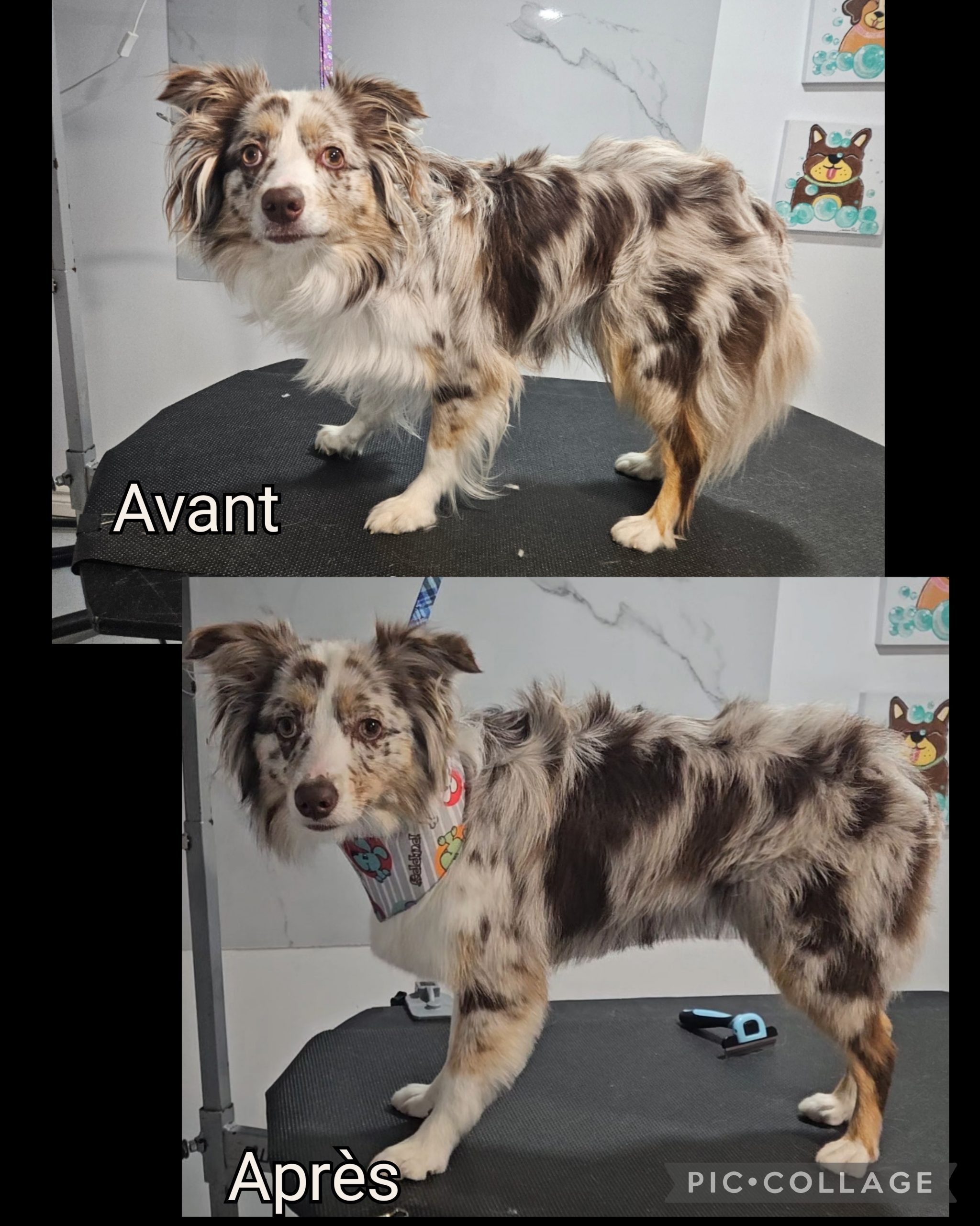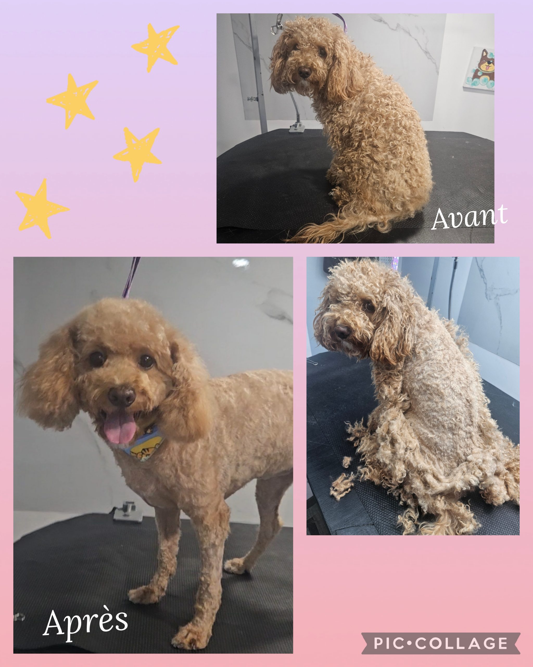 Bienvenue dans ma galerie de toilettage ! À travers ces photos, je souhaite vous montrer le soin et l’attention que j’apporte à chaque chien qui me rend visite. Que ce soit pour une coupe classique ou un toilettage plus sophistiqué, je m’assure que chaque compagnon bénéficie d’une attention personnalisée et d’une expérience de bien-être optimale. Ces images montrent bien le dévouement que je mets dans chaque toilettage.